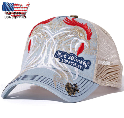 Red Monkey Rooster`24 RM1498 Denim Blue New Limited Unisex Trucker Hat Cap